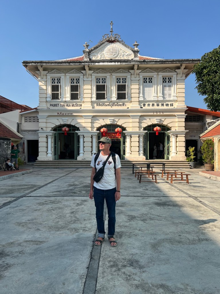 The old town museum and Thai Hua Museum were both fascinating and we spent a happy few hours looking round them. Both museums recount the history of Phuket, particularly the history of the Chinese community there and Phuket’s links with Penang and Singapore. The Chinese came at different points for various different reasons – to escape poverty and famine in China and to work in the tin mines. They then intermarried with local people becoming known as ‘baba’ if boys and ‘yaya’ if girls. Phuket has also experienced migration by Europeans who were involved in the rubber and tin industries and built some of the mansions scattered around the old town in particular. The architecture is an interesting mixture of styles. Phuket is an island of migrants and although the museums did not mention this, continues to be with the next generation who have arrived from Myanmar.
