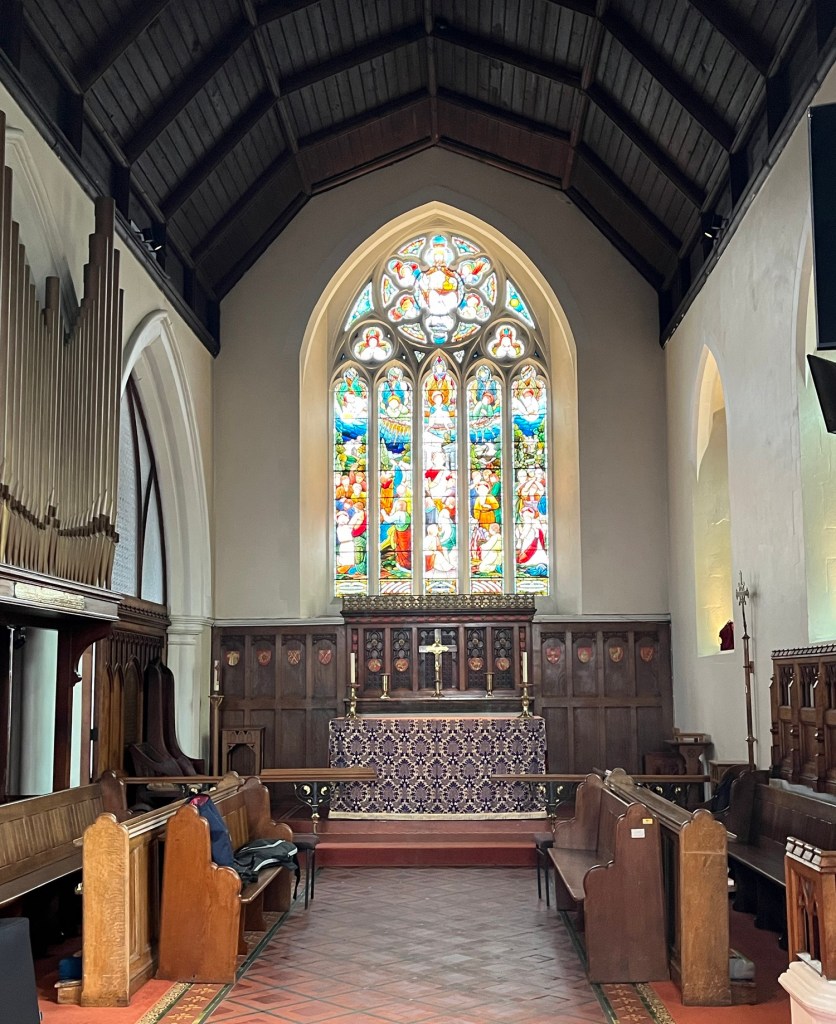 I headed up the road to St Pauls church. This C of E church was the one I attended as a young child (although I was baptised at the local catholic church – a long story I won’t go into here). I spent a bit of time wandering around the graveyard, which remains well tended, spotting the graves of a few people I remember. Luckily, I was able to have a look in the church as a couple of people were setting up for an evening performance of some sort. The font and the window with the story of St Paul are just as remarkable as I remember them. My old primary school was just across the road. I peeked through the fence – it didn’t seem to have changed much.