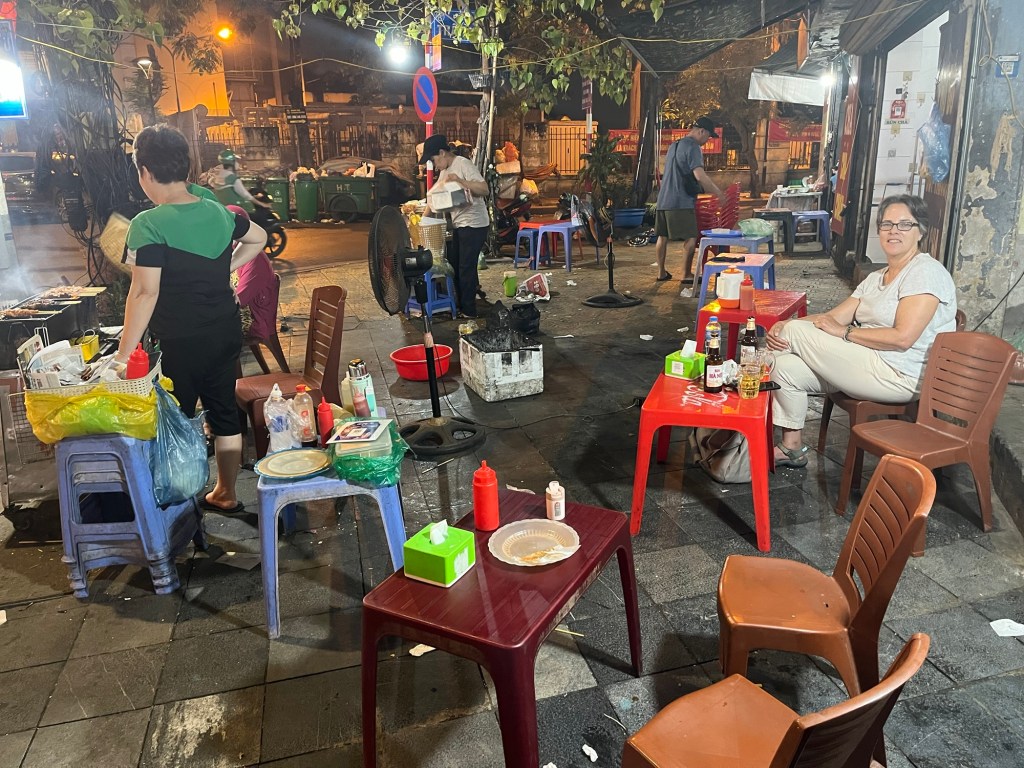 We followed our noses to a BBQ / beer garden but it was filled mainly with big groups and beer appeared to have to be ordered in enormous jugs, so we beat a retreat. We ended up eating Banh mi (bread and meat) at a street stall after doing some beer tasting at a bar that sold small batch ales.