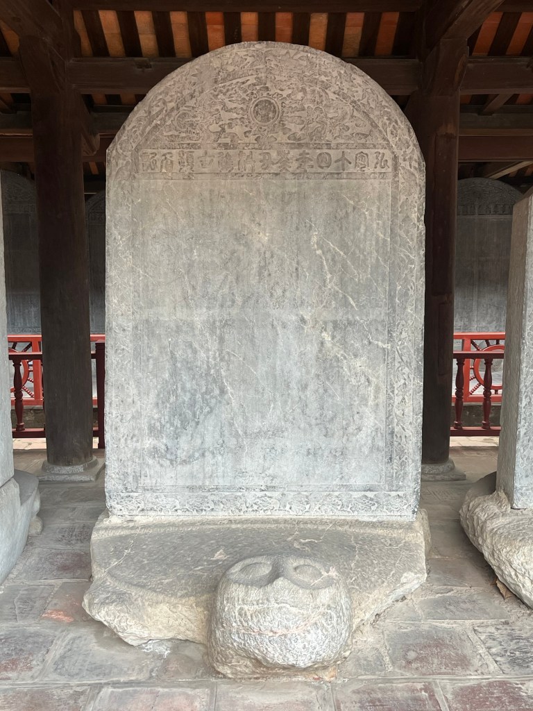 I imagine that on a quieter day the Temple of Literature would be a tranquil place, but it is very popular with the Vietnamese on holidays. As well as being an ancient relic, it is still in use as an active temple where young people pray to the Gods to help them with their studies. There are stone tablets, with carvings of turtles at their base memorialising the most successful of the temple of literature’s students. Tim and I said a quick prayer for our two students before leaving.