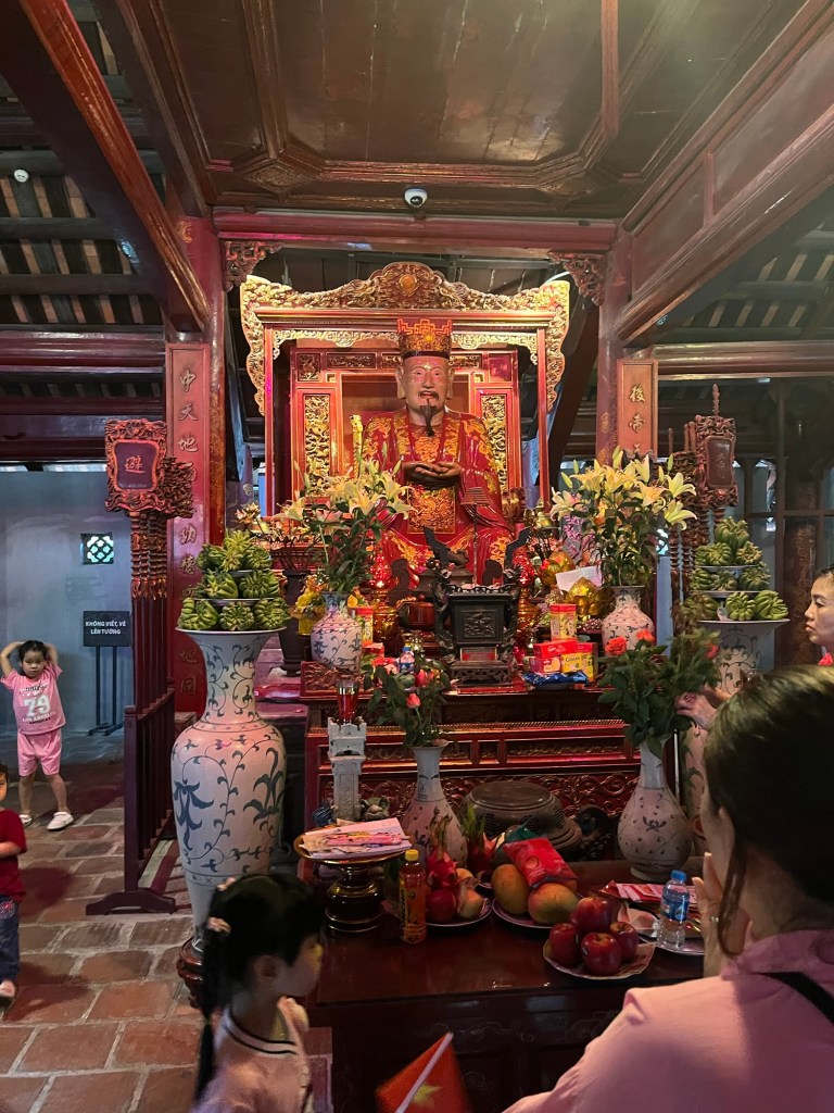 After taking a break from the rising heat to eat some noodle soup, we wandered around the Temple of Literature, dedicated to Confucius. The focus of the students at the university, which dates from 1070, was on literature and poetry. As I wandered I reflected on what we may be losing by such subjects dying a death in modern British universities.