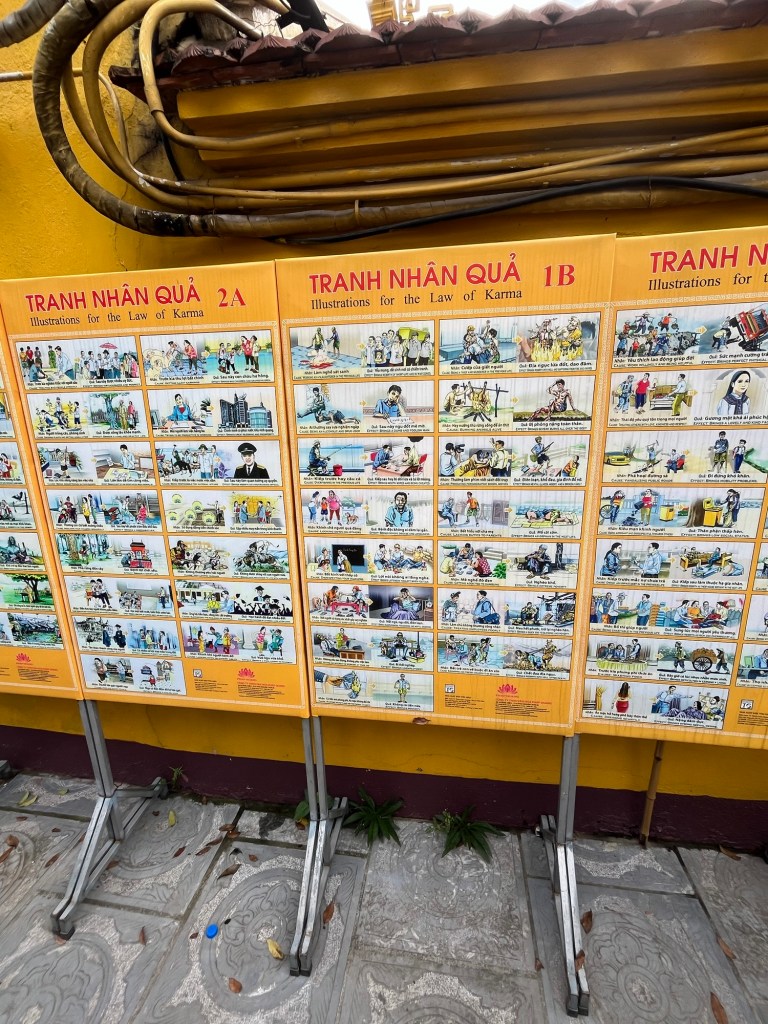 We also visited the Tran Quoc Buddhist pagoda. Even with the hoards of local and international tourists thus was a tranquil place. It was interesting reading the Buddhist teaching displayed (enlarge the photo below if you are interested).
