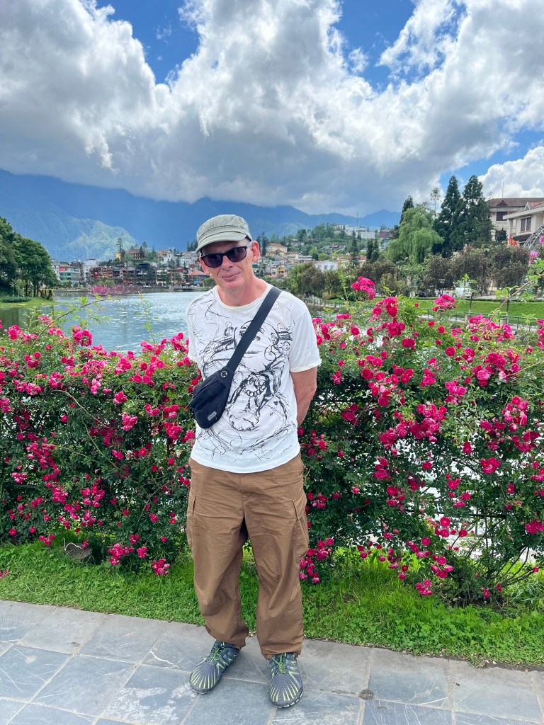 As we couldn’t yet check in we had breakfast and left our rucksacks in reception while we set off to find a trekking agency that had been recommended as being more ethical and locally run than others. We found it on the other side of town after a long but rewarding walk that orientated us to the layout of Sapa. Tim didn’t recognise the town at all from the visit he made thirty years ago and began to doubt that he was ever here. There is a big lake in the middle of town, that is of recent origin. It is attractive to walk around and on one side of it bushes full of small roses were in bloom.