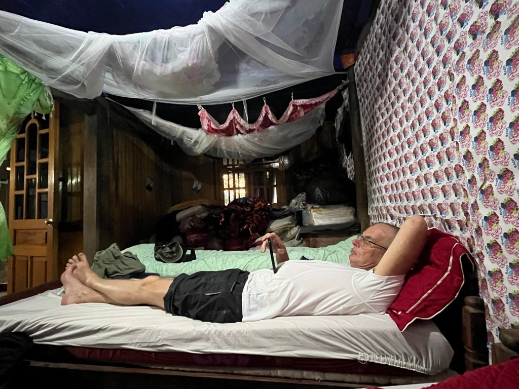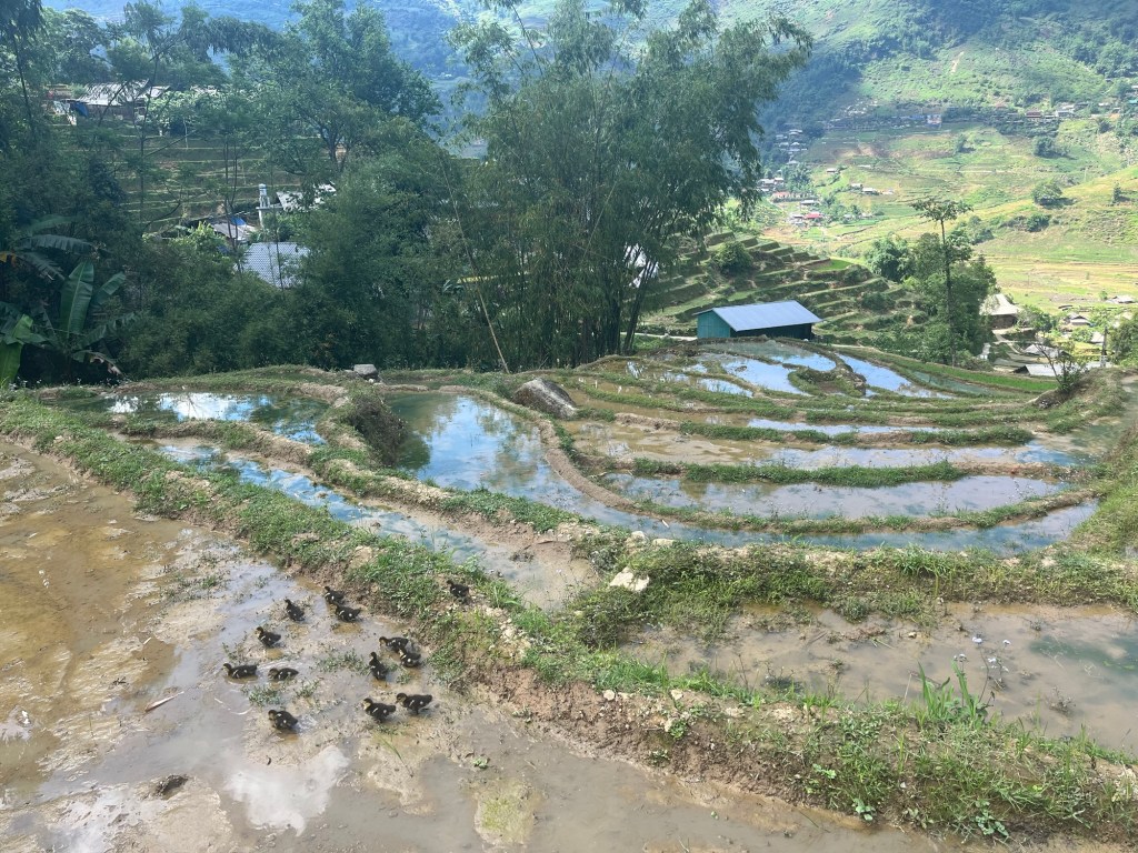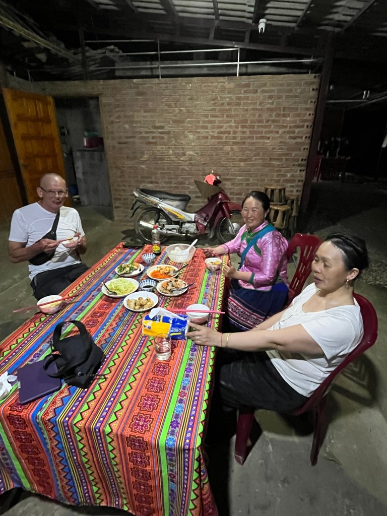 We stopped at a village where some of Zhao’s in laws live for lunch on our first day. They served us some delicious food. Although there was evidence of tourism encroaching, it generally seemed to be inhabited by ordinary Hmong families. The village we stopped at on our first night was not as overtaken by tourism as Cat Cat but it did still seem to mainly consist of tourist lodges. The house of Zhao’s in- laws where we stayed seemed to be one of the last remaining local properties. Zhao said that her relative, who owns it, could modernise it, but she doesn’t want to as her husband, who has now passed away, built it for her. We spent a comfortable night there and ate a delicious dinner with family members.