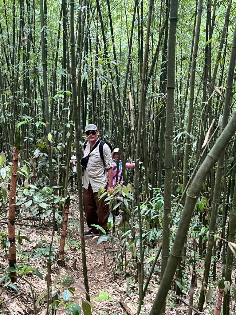 The second day of the trek involved a long climb up a steep valley that was exhausting in the sticky heat. Zhao then decided to treat us to a ‘short cut’ that involved another scramble down a near vertical slope. Nevertheless the reward of getting off the roads and seeing the beautiful countryside was worth it. I particularly enjoyed walking through the ‘bamboo forests’, which were cool and shady. I also liked seeing the village animals running free: chicken, pigs, and a particular breed of duck called a ‘groot’.