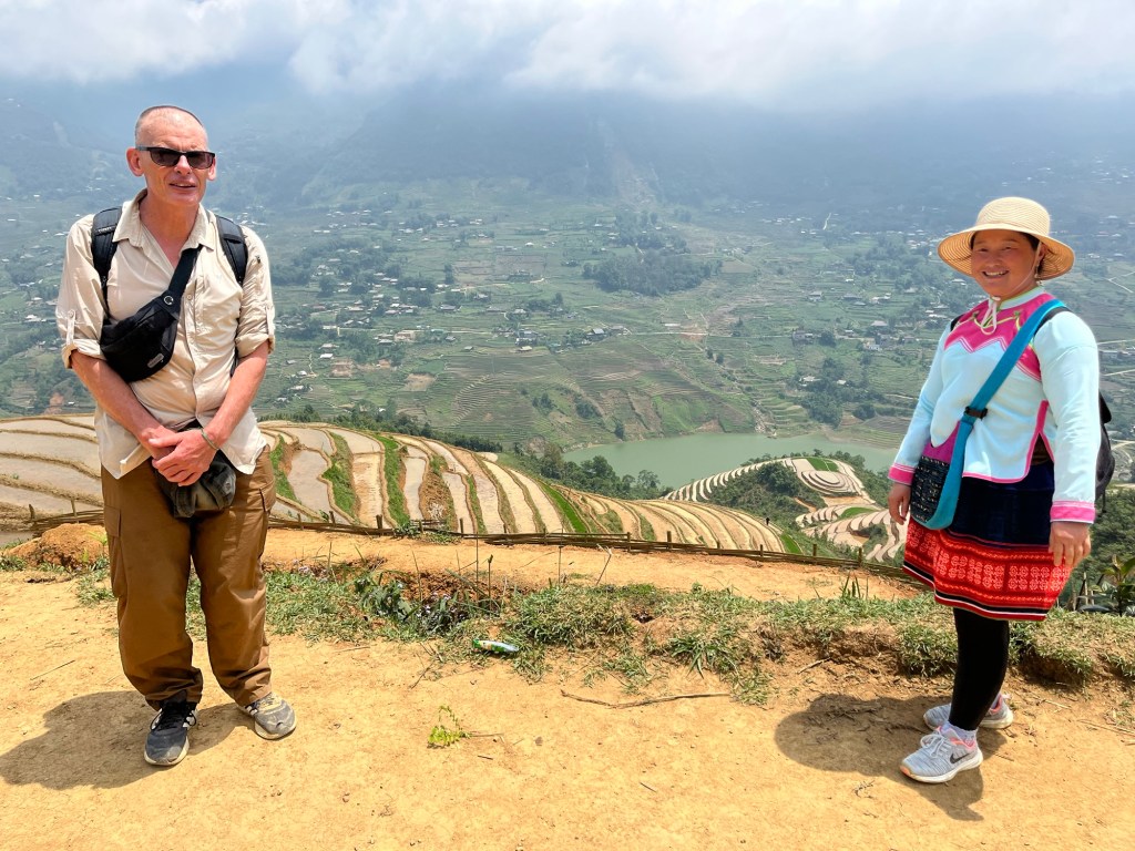 Tim reminisced with Zhao about how the Sapa area has changed since his original trip here. Zhao recalled how she and her friends used to be terrified of tourists. Her Mum would tell her that they put Hmong children in their rucksacks and kidnapped them! She agreed that while tourism has improved the lives of a lot of people in the area there are still many poor people, for example the tribal people who come into Sapa to sell items or beg. Many bring their children with them, which makes the tourists feel more sympathetic to them. However it also means that the kids miss out on school, so ultimately it is not something that is helpful. There was a disaster recently when a small boy who was sleeping under a car in Sapa to keep warm ending up being crushed and killed when the car drove off.