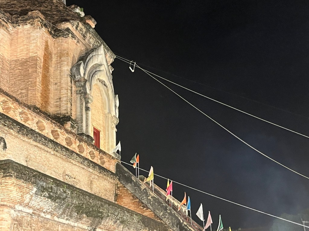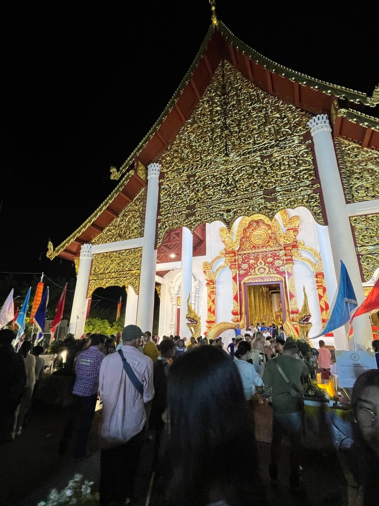It was the last night of the festival, which goes on for several days and the wat was packed. Chedi Luang is one of the oldest and most significant wats in the old town. It has a massive central stupa which partially collapsed during an earthquake. The temple underwent reconstruction in the 1990s. The Inthakin festival centres on the city pillar which is located in the grounds of the temple, which are extensive.