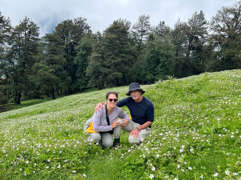 We walked slightly further – 5.5km – on our second day, As this was a beginners/ moderate trek the pace was nice and slow. We passed through another gorgeous alpine meadow, this time studded with white flowers in every direction. Our campsite that night was at 3465 metres. I wasn’t too impacted by the altitude, other than feeling a slight tense band around my head and eyes. In keeping with the Indiahikes philosophy Suraj had delegated all the trek leader’s tasks to members of the group and people had volunteered to take on various jobs. I and Manasee said that we would be water monitors which just involved reminding people to drink. I think Tim got away with not having to do anything. A couple of the younger Indian men who were keen trekkers took on the leader roles, but Manasee, Vineeta and I were quick to complain when they tried to make us all walk too fast. There was a young seventeen year old walking with her brother who was struggling a bit, but with everybody’s help she managed to complete the trek.