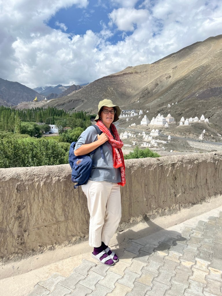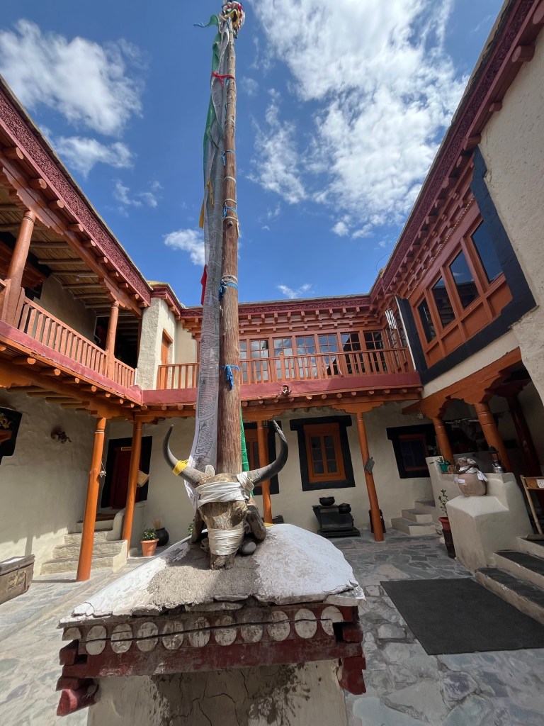 We headed to Stok village first, where the kings of Leh were banished by the Dogras of Jammu in the 18th century. Unfortunately it was soon clear that our driver had never been there before so we resorted to trying to direct him via google maps. This had limited success as our mobile reception wasn’t great. A road seemed to have disappeared into the river, so maybe the issue was not the driver at all, but a changing landscape following a flood. After a lot of driving around bucolic countryside studded with fruit trees, rivers and remote dwellings we reached Stok Palace.