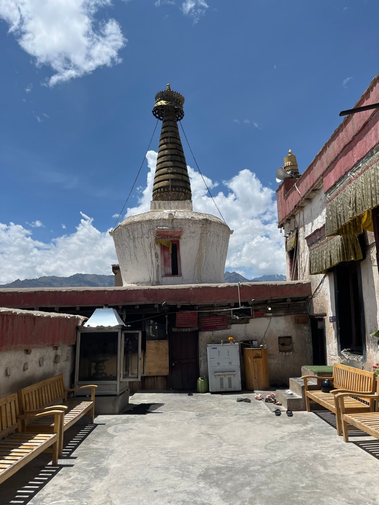 We spent some time wandering around and enjoying the peaceful atmosphere of the monastery . Tim had a chat to a man from Mumbai who was travelling through Leh on his motorbike.