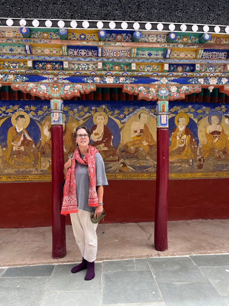 After a short break for refreshments opposite Shey Palace (ok coffee, terrible food, even more terrible loos) we drove to Thiksey Gompa. This had five fascinating temples and ornate decorations. In one of the temples all the statues were covered. This was because they represent wrathful deities that are too powerful to be viewed by the human eye except once a year.