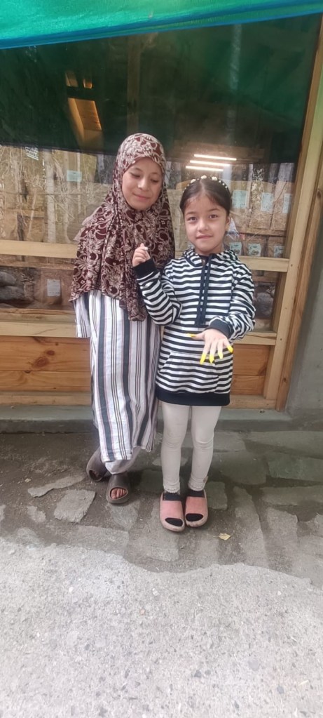 Elderly villagers offered us apricots and mulberries for sale, to supplement their income. We had lunch and then wandered through the village. Like in Leh and Hunder numerous small water channels ran through the village, irrigating the fields and providing for the daily water needs of the villagers. Groups of kids played in the alleyways. We chatted to some little girls, one of who had created beautiful false nails for herself using the petals from a sunflower.