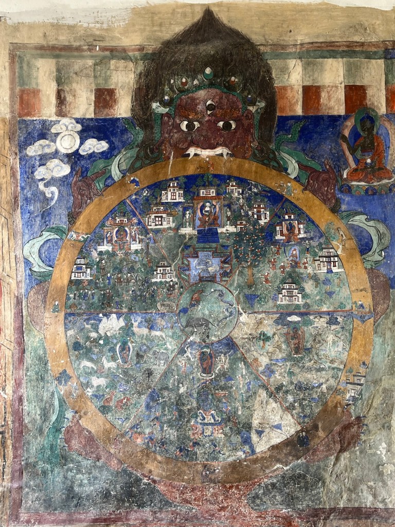 The walls outside and inside the temples of the monastery are covered with intricate and beautiful pictures and mandalas.