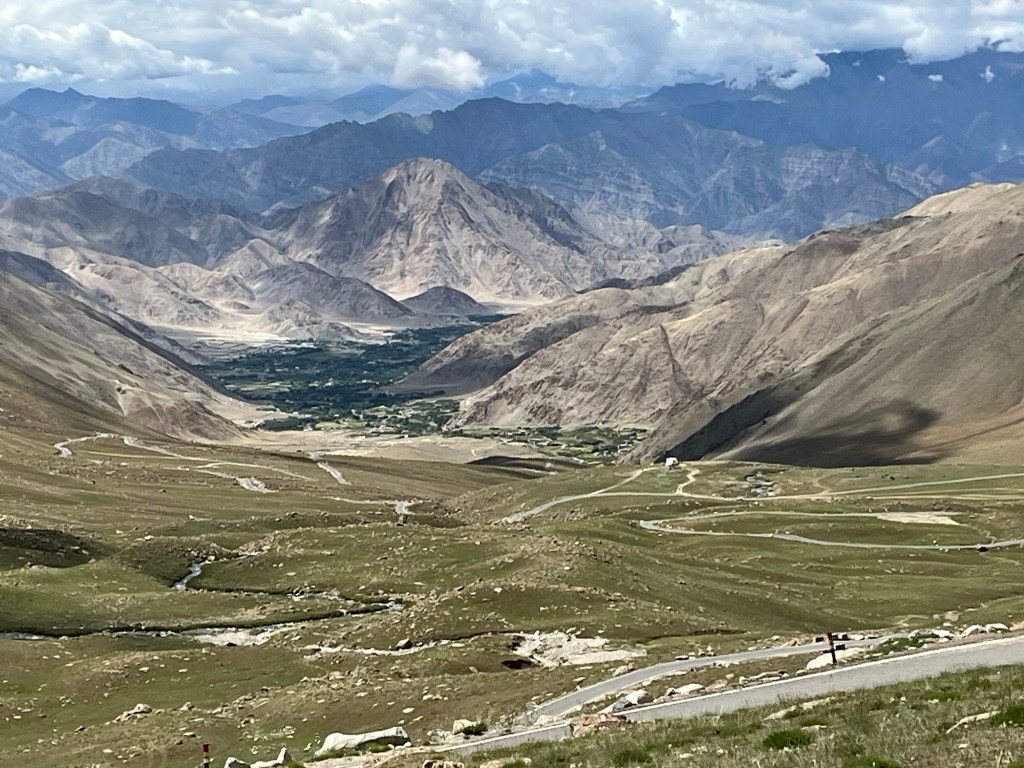 Our driver was young but displayed just the right ratio of speed to care. He was clearly experienced driving this route and I breathed a sigh of relief. The route to and over Kardung La pass was as spectacular as anything we had experienced on this trip so far. From the pass we got our first glimpse of the Karakoram mountain range which we had last seen when we were in northern Pakistan in 2000.