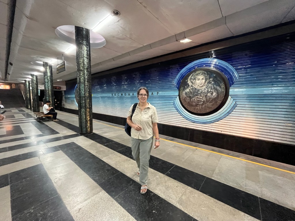 I have to mention the metro in Tashkent. Many of the stations have beautiful murals decorating their walls. Our favourite was our nearest station ‘Kosmnavtlar’.