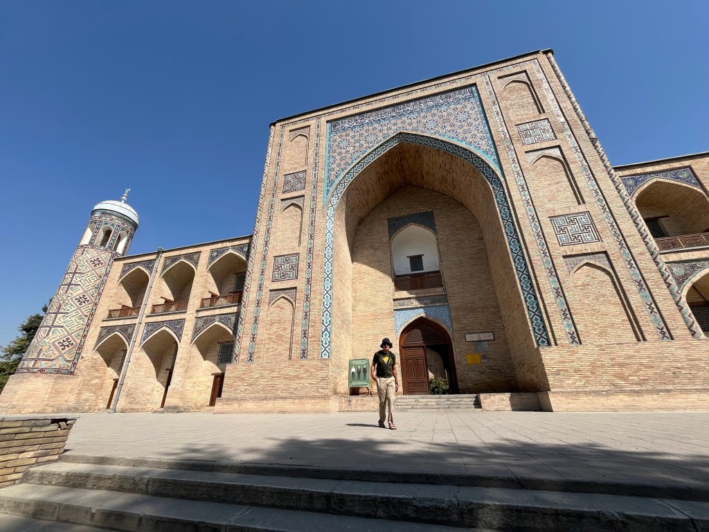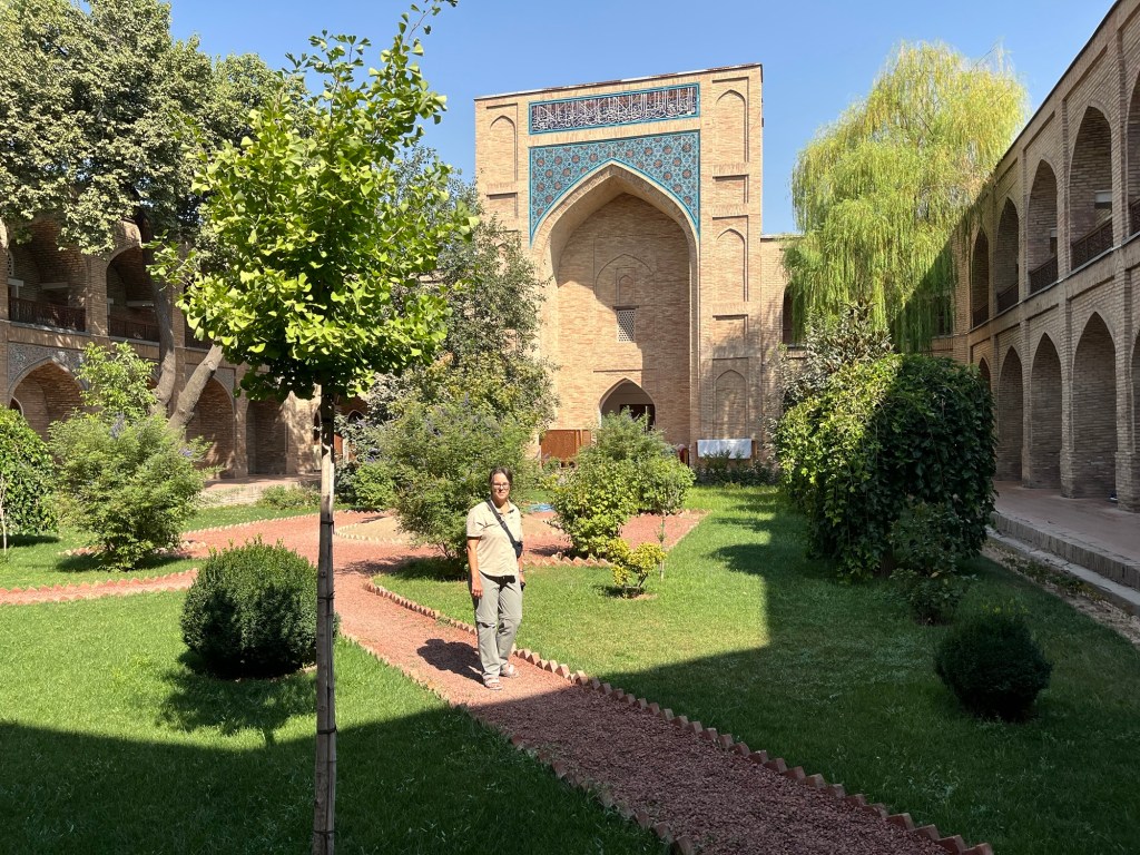 The next day we visited Kulkedesh madrassa. It has been restored in recent years and is now an active place of learning again. Inside is a tranquil enclosed garden. Unfortunately the Khast Imom Square, where a centuries old Qua’ran is stored was closed for renovation. Like all the other big Central Asian towns we have visited frantic building activity is evident.