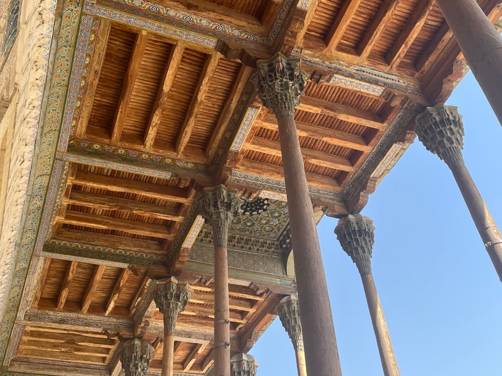 Opposite the Ark is the oldest mosque in town, Bolo Hauz, which has beautiful wooden pillars. The ceiling was constructed from poplar wood using the same method as the buildings we explored in Leh.