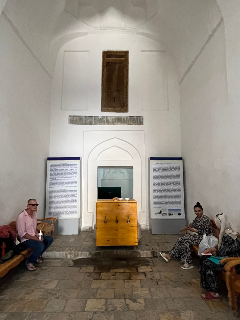 When the sun started to sink and it got a bit cooler we walked over to the old Zindan or prison of Bukhara. Two British army officers, Stoddart and Connolly, were imprisoned in a bug and scorpion infested hole here in the 19th century. The Emir was annoyed that they didn’t bring a personal letter from Queen Victoria with them and felt slighted, so he took revenge. The funniest part of the story is that a clergyman who was later sent to confirm that they had been beheaded was only saved because the Emir found his clerical garb so ridiculous that he couldn’t take him seriously.